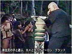 一難去ってまた一難。デニス・ホッパーの惨状に馴れる間もなく、コッポラを最後にして最悪のトラブルが襲った。ハリウッド最大の問題児、マーロン・ブランドの御入場である。 「彼が太ったことは聞いていた。しかし、あれほどとは.....。だって彼は僕に体重を落とすと約束していたんだ」(コッポラ)。 コッポラはカーツのキャラクターを変えなければならなかった。女を何人もはべらせ、マンゴの喰い過ぎで太ったんだと。しかし、肥満を気にしていたブランドは、そういう描かれ方を拒否した。コッポラは途方に暮れた。 |