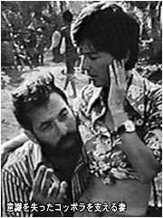 「夫はブランドに事前に原作を読んでおくように指示していました。しかし、二人が話し合いを進めるうちに、夫はブランドが原作を読んでいないことに気づいたのです。これは夫にとって大変なショックでした」(エレノア・コッポラ)。 これ以上の話し合いは無駄だと察したコッポラは、とにかく残された期間、ブランドとマーチン・シーンの即興を撮り続けることを選んだ。それより他に方法がなかったのだ。撮れるだけ撮って、後で使えそうなものだけ編集する。これは完全主義者のコッポラにとって地獄の苦しみだったことだろう。今までの金と時間の浪費のツケが一気に回ってきたのだ。 「夫は撮影中に意識を失って倒れました。その時、暗いトンネルを通って行く自分が見えたと。現実から遊離し、死に近づいて行くのを感じたと。たぶん正気と狂気の境にまで行ったのでしょう。とにかく、この映画はそんな映画でした。発狂の危険を犯し、人間の行き着く極限を見極めて、夫は戻って来たのです」(エレノア・コッポラ)。 コッポラは次の言葉でこの映画を締めくくっている。カーツの臨終における呟きである。 「僕はミリアス=ルーカスの結末ではなく、《闇の奥》のそれに近づけたかった。ミリアスの脚本と原作をミックスし、更に僕自身のジャングルでの体験を加えよう。そう心に決めていた」(コッポラ)。 図らずしもコッポラの上の決意は、最悪の過程を経て実現されたのである。 |