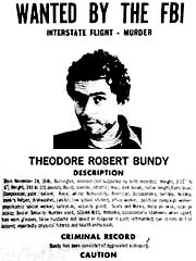 警察がバンディをこれだけで許す筈はなかった。一連の連続殺人事件で告発する準備を進めていた。 バンディ逃走のニュースは全米を駆け抜けた。付近の住民は野放しになった狂犬に怯え、お調子者たちはバンディの快挙にエールを送った。バンディTシャツが飛ぶように売れ、バンディバーガー(中身を開けると肉は姿かたちもない、つまり、中身が逃げ出してしまったハンバーガー)なるものも売り出された。ヒッチハイカーは冗談で「私はバンディに非ず」の看板を掲げた。全米が現代のビリー・ザ・キッドに熱狂した。 バンディは厳重な護衛付きで拘置所に帰還した。以後、彼が監房から出るときは必ず足かせがはめられるようになった。 1977年12月30日、上の決定を受けてバンディは再び脱走を企てる。16キロも減量した彼は、独房の天井に弓鋸で開けた小穴から娑婆に抜け出したのだ。シアトル一帯には非常線が張られた。問題のメグ・アンダースは警察に保護された。しかし、肝心のバンディはというと、方向違いのフロリダに向かっていた。 |