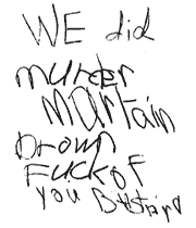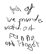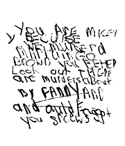 ●第4の紙片 この誤字だらけのなぐり書きを警察は悪質ないたずらだと考えた。 |