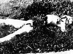 検視解剖の結果は、更に驚くべきものだった。肛門と膣には何かが押し込まれていた。それは人間の皮膚だった。小片をパズルのように並べると、それは大腿のえぐられた部分であることが判明した。 |