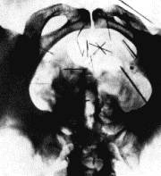 フィッシュの異常性が顕著になったのは、1917年に妻に逃げられてからである。贖罪を求めて、自らを罰するようになったのだ。子供に頼んで鞭を打たせるなどは序の口で、汚物を食べたり、肛門にアルコールに浸した綿を入れて火をつけたり、陰嚢に針を突き刺したりしていた。左に彼のレントゲン写真があるが、29本の針が陰嚢に刺さったままである。