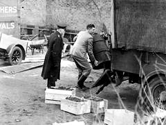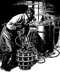 夫人を案内する予定だったというサセックス州クローリーの「工場=ちっぽけな倉庫」を捜索した警察は、ガスマスク、ゴム手袋、ひどく汚れたゴムの前掛け、ゴム長靴、手押しポンプ、そして、鉄枠と藁のクッションで補強された大きなガラス瓶を発見した。 |