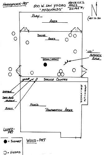 1984年7月18日水曜日午後4時、カリフォルニア州の国境の町サン・イシドロのマクドナルドは混み始めていた。店員や客のほとんどはヒスパニック系である。まだ22歳の女性店長ネヴァ・デニーズ・ケインは1ケ月前に結婚したばかりだった。ポリーナ・ロペスとマルガリータ・パディラ、エルサ・ボルボアの3人はいつもの笑顔で接客していた。