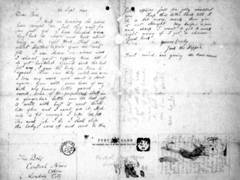 予告通りにエリザベス・ストライドとキャサリン・エドウズが殺害された翌日の10月1日の消印で第2の便りが届いた。このたびは血が付着した葉書である。 |