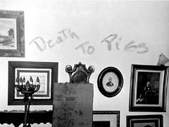 ![]() 「豚どもに死を」の血文字 |
