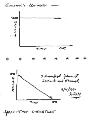 やがてマリンはその後の人生を決定づける重大な発見をする。まず、相対性理論でお馴染みのアルベルト・アインシュタイン博士が1955年4月18日に死亡したこと。そして、サンフランシスコ大地震が1906年4月18日に起きたこと。この2つの事実がクルクルパーの頭の中で有機的に結合し、冒頭の陳述のような妄想を抱くに至ったのである。