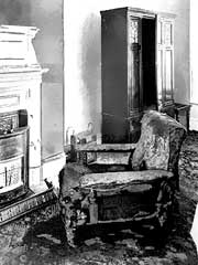 また、火元は肘掛け椅子のすぐ下のガソリンを染み込ませた新聞紙だった。