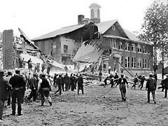 爆発の威力はそれは凄まじいものだった。机や教科書と共に子供たちも吹き飛ばされた。屋根は崩れ落ち、多くの子供たちが下敷きになった。この爆発により37人の生徒と2人の教師が帰らぬ人となった。