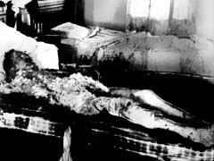半ば焼け焦げた遺体の上には、どういうわけか羽毛が撒き散らされていた。後頭部を4回に渡って鈍器で殴打され、頭蓋骨が陥没している。顔には血が伝わった跡があった。このことはつまり、下を向いた状態で殴られて、その後に仰向けで寝かされたことを意味していた。