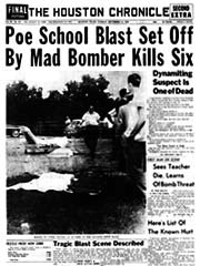 警察の調べによれば、ポール・オージェロンは元金庫破りのタイル職人で、梅毒を患っており、オツムがかなりイカれていた。ダスティの母親は彼と2度離婚している。DVが原因だ。ヒューストンに来る途中でニューメキシコに寄り、大量のダイナマイトを入手している。校門脇に停められていた彼のステーションワゴンには150本ものダイナマイトが残されていたというから、なんともはや物騒なはなしだ。
