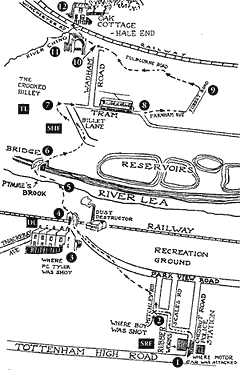 1909年1月27日朝、トッテナムのゴム工場に2人組の武装強盗が押し入った。ラトビア出身のアナーキスト、ポール・ヘルフェルドとジェイコブ・ラピダスである。彼らは給料が詰まった現金袋を奪うと、工場の敷地に停めてある自動車を銃撃、ラジエーターに穴を開けて走れないようにしてから逃走した。