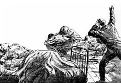 すると、男はうめき声をあげながら、目の前の家を指差した。ハッチンソン氏は恐る恐る中を覗いて仰天した。部屋中が血の海だったのである。
