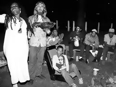 雄鶏を抱えたラコヴィッツとホームレスたち