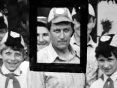 ボーイスカウトだろうか? 場所はのどかな森林地帯である。少年たちの首には赤いスカーフが巻かれている(左写真参照)。これはソビエトのボーイスカウト「ヤング・パイオニア」の制服なのだそうだ。