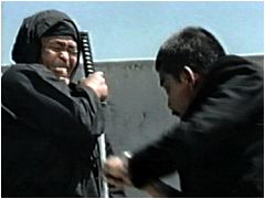 テレビでいきなり「へっぽこ忍者」のシーンから見てしまったために、これまで改めて観ることのなかったこの映画、ビデオ屋でなんときなしに眼に止まってしまい、自虐的な気分で借りてみた。サム・ペキンパーの信者からも「ペキンパー唯一の駄作」と忌み嫌われているだけあってシドイ、シドイ。正真正銘の最低映画である。 ジェームズ・カーンとロバート・デュヴァルの「ゴッドファーザー義兄弟コンビ」は、この映画でもコンビを組んでCIAの下請けの殺し屋家業を勤しんでいる。ところが、ロクに活躍もしないうちにカーンはデュヴァルに裏切られ、利き腕片足をオシャカにされちまう。 カーンは早速、仲間を呼び寄せるが、これがガン・マニアのボー・ホプキンスとタクシー運ちゃんのバート・ヤング。片輪にキチガイにデブったおっさんトリオのどこが「キラー・エリート」かと小一時間問いつめたい。 で、ようやく例の「へっぽこ忍者」のシーンである。ペキンパーお得意のスローモーション撮影が駆使されておるが、短刀で襲い掛かる忍者軍団をウージーでバババババンと皆殺しする様にはカタルシスのかけらもない。「大人気ない」が最も適切な修辞である。 「ひでえ脚本だなあ。誰が書いたん、こんなの」と調べてみると、なんとブルース・リーの弟子にしてマブダチのスターリング・シリファント!。こいつ、師匠の教えがまるで判っていなかったのだ(笑)。 で、この映画の中で一番カッコいいのは、実は、一番冴えない風貌なのにソツなく仕事をこなすバート・ヤングだったりする。 |