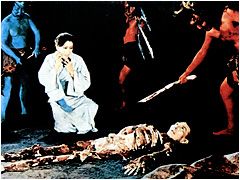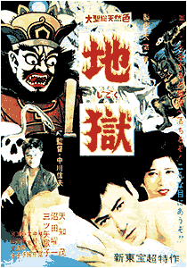 第二部の悲惨もハンパではない。 製作は「日本のロジャー・コーマン」として近年再評価されつつある大蔵貢。弁士出身の興業師である彼が、倒産寸前だった新東宝の社長に就任したのは55年のこと。57年に『明治天皇と日露大戦争』を放ち6億3千万の大ヒットを記録。経営を立て直すも、映画産業全体の斜陽には勝てず、見世物小屋的発想のエログロ路線に転向。しかし、61年に敢えなく倒産。『地獄』は新東宝末期に咲いた仇花であったのだ。 大蔵氏にうんと怒られた中川信夫監督については、あまりにも多くの絶賛が寄せられている名匠なので、私が書くまでもないだろう。ただ、晩年は「本編」が撮れない不遇時代が続いた。東京12チャンネルの伝説的エロ番組『プレイガール』などを監督していたが、ひし美ゆり子による回想録によれば、結構楽しんで撮っていたようだ。割切りのできる職業監督だったのだろう。 とにかく、『地獄』は私の邦画ベスト1であることは間違いない。 |