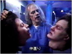 第2話は、頭髪が薄くなり始めているステイシー・キーチが悲惨な目に遭うブラックコメディ。その恋人役が誰かと思ったらシーナ・イーストンで、 第3話は一転してシリアスなサイコ・ホラー。ルークことマーク・ハミル扮する野球選手が自動車事故で失明し、眼球の移植手術を受ける。ところが、主治医がロジャー・コーマンだったものだから、ルークは悲惨な目に遭うのであった、という物語。ルークの妻役が誰かと思えばツイッギーで、 最後にはトビー・フーパーが出て来てカーペンターを解剖する。邦題を『懐かしのあの人とゲテモノ監督がゾクゾク登場!/われらボディバ〜ッグス!!』とでもした方がいい1本である。 |