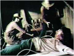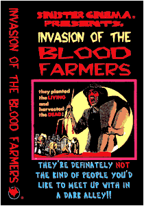 レンタルビデオ黎明期の85年頃、不思議なビデオが店の棚に並んだ。タイトルは『血まみれ農夫の侵略』。ハーシェル・ゴードン・ルイスのスプラッターと共に並べられ、解説には「これはハーシェル・ゴードン・ルイスへの解答だ」とかいうようなことが書かれていた。パッケージ表は農夫が女を串刺しにしようとしているイラスト、そして、裏には3人の農夫が人肉をむさぼり喰っている写真があった。 |