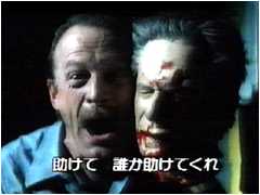 このように物語はフニュフニュだが、殺人描写はかなりエグい。 結局、ヒロインと昔の男が共闘してキチガイおやじを撃退。やれやれと思っているところに警察官=ブルース・キャンベルがやってくる。ところが、彼はうっかりさんで、勘違いで二人を逮捕。おねえちゃんの「あんまりだあ!」ってな顔にズームしてチョン。 |