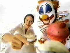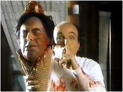 「あの人は今?」という特番があると、2回に1回は必ずエントリーされるのがオリビア・ハッセーである。元布施明夫人だったからだが、特番中に紹介される映像は、必ず「君は薔薇より美しい」というあのCMと、デビュー作『ロミオとジュリエット』だ。失礼な。彼女は他にも山ほどの映画に出演しているし、現在も立派に活躍中だ。B級映画でだけど。 おつむが悪いアイスクリーム屋が仕出かす惨劇を描いた本作は、クリント・ハワードの演技があまりにもリアルで「本当に危ない人なんじゃないか?」となんだか心配になってくる。しかも、アイスクリームの上をゴキブリやネズミが這い回り、非衛生的なことこの上ない。殺人鬼でなくても、いずれは食中毒かなんか起こして逮捕されていたことだろう。ところが、こんなにヤバいアイスクリーム屋でも、あそこは旨いと大繁盛。お味の秘訣は人肉のブレンドで、トッピングに目玉を使ったりする。 なお、我らがオリビアの役どころはといえば、主人公の癲狂院時代の看護婦で、現在の身元引受人。今ではボケたババアという設定だ。私の記憶によれば初めて挑んだフケ役であった。 |