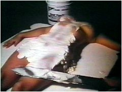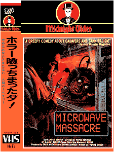 しょ〜もない邦題に気勢を殺がれるが、海の向こうではカルトである。数年前、輸入ビデオ屋で見つけた時は、電池でピコピコと点滅する電子レンジがオマケで付いていた。当時はしょ〜もないと思ったが、今思い出すに、買っておけばよかったと猛烈に後悔している(註1)。 内容はというと、原題の『電子レンジ虐殺事件』が示す通り、人喰いホラー喜劇である。 とまあ、以上のあらすじが示す通り、本当にしょ〜もない。同じ人喰い喜劇ならば『フライパン殺人』の方が遥かに出来がよい。にもかかわらず本作がカルトとなっているのは、そのバカバカしい人喰い描写ゆえだろう。バーベキューにするために手首とピーマンを串刺しにする。売春婦の胴体でケーキを作る。これをモリモリと食べる主人公。本当に旨そうに見える。本作を見た直後ならば、ひょっとしたら抵抗なく人肉が喰えるかも知れない。 註1 本当は、そうでもない。 |