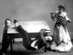 バスター・キートン、本名ジョセフ・フランク・キートンは1895年10月4日、ジョー・キートンとマイラの第一子としてカンザス州に生まれた。両親は旅回りのボードヴィル芸人で、当時は「キートン&フーディーニ・メディスン・ショウ」に参加していた。「フーディーニ」とはもちろん「脱出王」の異名で知られる手錠抜けの名人、ハリー・フーディーニのことである。キートンによれば、「バスター」という芸名はフーディーニから授かったものだという。 |