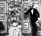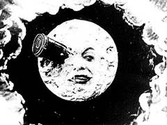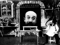 云わずと知れた特撮映画の父。『月世界旅行』があまりにも有名である。 ロベール・ウーダン劇場のオーナーにして手品師のジョルジュ・メリエスが映画製作に手を染めたのは、1895年12月28日のシネマトグラフ初上映会に足を運んだことが切っ掛けだった。当初はリュミエール兄弟と同様のドキュメンタリーが中心だったが、或る日のこと、オペラ座広場での撮影中にフィルムが引っ掛かってしまう。これを直して撮影を続行。現像して見て驚いた。なんと乗り合い馬車が突然に葬式馬車に変わってしまったのだ。つまりメリエスはまったくの偶然でトリック撮影を物にしたのである。 当初は、例えば左の『ロベール・ウーダン劇場に於ける一婦人の消失』のようなトリック撮影(婦人が瞬時で骸骨に)をただ見せるだけの他愛ないものだったが、次第に物語性が加味されて、遂に『月世界旅行』へと辿り着く。1本の映画の中にいくつものシーンがあるというだけでも当時は画期的だった。