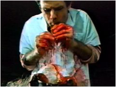 とにかく、あらゆる意味で最低な映画。これよりもシドい映画は世界中探してもあまりない。 残酷劇を主催するサルドゥという名のキチガイ男。彼は黒人ミゼットの召使いに命じて女を誘拐し、洗脳してこれを舞台でなぶり殺し、上物は奴隷として海外に輸出していた。恐怖の館の地下牢には洗脳に失敗して白痴と化した全裸の女が十数名。彼女たちの食事は舞台で殺した女たちの生肉だった。 |
