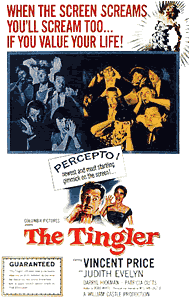 私が彼を初めて認識したのは「ヒッチコックのニセ者」としてだった。映画の冒頭で葉巻を燻らせながら口上を述べる彼の姿は、あからさまに『ヒッチコック劇場』でのヒッチコックのそれであり、彼もそれを意識し、パロディを演じているかのようだった。ヒッチコックがスター化した最初の監督ならば、彼はそれの追随者、悪く云えば模倣者だったのだ。作品的にもヒッチコックの模倣が多く、今日評価されているものは少ない。彼に唯一、ヒッチコックを越えているものがあるとすれば、それはギミック(仕掛け)においてだろう。 キャッスルが最初にギミックを用いたのは『マカブル』だったと云われている。彼はここで観客全員に死亡保険をかけたのだ。すなわち、この映画を見ている最中に観客が死亡したら1000ドルが支払われるとしたのである。つまり、それほど怖い映画だという宣伝であり、これが奏功して『マカブル』は大ヒットした。 代表作の一つ『ティングラー』ではもっと過激なことをした。客席のいくつかに微電流が流れる装置を仕掛け、ティングラーという寄生虫が劇場に逃げ込むシーンで電流を流したのである。劇場内はパニックに見舞われたという。 『第三の犯罪』はヒッチコックの『サイコ』の模倣作。ストーリーはガチャガチャだが、ラストには観客をアッと云わせるオチが待っている(これには私もだまされた)。キャッスルはラストの衝撃にダメ押しする。種明かしの直前に上映を中断して、自らによるこんな口上を劇場に流したのだ。 『ミスター・サルドニカス』では今日的なこんな面白い仕掛けを施した。オチを2通り用意し、ラストの寸前で投票を行い、主人公であるサルドニカス氏の命運を観客に委ねたのである。 『血だらけの惨劇』は『サイコ』の原作者であるロバート・ブロックを脚本に招いた、キャッスルの最高傑作であるが、これ以降からギミックは用いられていない。観客がギャーギャー叫びながら楽しむ時代が終わったということだろうか。 製作者としての彼の仕事は、オーソン・ウェルズの『上海から来た女』と、ロマン・ポランスキーの『ローズマリーの赤ちゃん』の2本に尽きる。この2本の審美眼からすれば、彼はプロデューサーに徹していれば、より多くの傑作を世に送り出すことが出来たことだろう。しかし、彼は自ら監督し、自ら出演して口上を述べ、自らギミックを考えることを選んだ。根っからの興行師だったのだ。晩年に書かれた自伝のタイトルは『さあ、寄ってらっしゃい!』である。 |