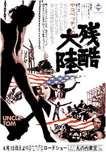 『残酷大陸』は、どうしてこの映画がもっと注目されないのだろうと不思議に思うほどの大怪作である。ヤコペッティは「モンド映画」で得たやらせのノウハウを生かして、アメリカにおける黒人奴隷制の「疑似ドキュメンタリー」を作り出したのである。 フィルムはアフリカから「輸入」されたばかりの黒人たちが屋外の巨大浴場で洗浄されるシーンから始まる。 こうした危険な終わり方にしたのは、当時流行していた「ブラックスプロイテーション」を意識して、黒人の集客を見込んだからである。しかし、ヤコペッティの黒人蔑視は明白で、黒人たちは騙されなかった。白人からもそっぽを向かれて興行的に大惨敗。作品的にも無視されてしまった。 続いてヤコペッティは、ボルテールの『カンディード』を映画化した『大残酷』を発表。。クネゴンダ姫を追うカンディードが時空を超えて中世、近代、現代の「問題地帯」を行き来するというヤコペッティの総決算であったが、前作同様に大惨敗。ヤコペッティは以後、監督作を一切発表していない。 |