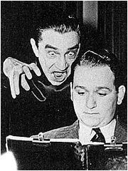 その死後もドラキュラ伯爵の衣装で埋葬された一代のドラキュラ俳優。『魔人ドラキュラ』『恐怖城』等で一世を風靡したが、その栄華は長くは続かなかった。40年代に入り怪奇映画がSF映画へとバトンを渡すと同時に消沈。以後、モルヒネ中毒に悩まされながら、低予算のコメディでせっせとセルフパロディを演じ続ける。最晩年には史上最低の映画監督、エドワード・D・ウッド・Jr.の作品に出演。落ちるところにまで落ちた感がある。 ちなみに、ティム・バートン監督『エド・ウッド』でベラ・ルゴシを演じたマーチン・ランドーはアカデミー助演賞を受賞した。これはアカデミー協会がルゴシに与えた唯一の賞である。 |