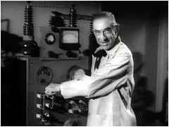 そんなトンデモない経緯で完成された映画、『怪物の花嫁』は、こんなにトンデモない物語である。 放射能により超人を作り出す研究をしているヴォーノフ博士(ルゴシ)は、気狂い博士のレッテルを貼られて祖国から追放されてしまった。復讐を誓った博士は、ロボという名の低能の助手(トー・ジョンソン)と共に何故かタコを巨大化させたり、近所の人を誘拐しては改造しようとして殺してしまったりと、いろいろと無茶なことをしでかしていた。 「故郷?。故郷か.....私に故郷などない。追い回され、蔑まれ、まるで獣のように生きて来た。だが今に見ておれ。私は必ずや実験を成功させる。私の作り出す超人たちが世界を征服するのだ」。 あのネッシーの正体も、博士が巨大化させたタコだという。これには驚いてしまったが、それはともかく「大ダコ出現!」の情報に女性記者が取材を始め、そしてすぐさま囚われの身となる。 「あんなヘタな役者は初めてだったよ。同じシーンを17回も撮り直したんだぜ。あいつはどうしても台詞が覚えられなかったんだ」(エド・ウッド) ウッドがヘタと云うからには、それはもう本当に凄まじい大根だったことを意味する。しかし、映画自体がダメダメなので、マッコイの演技の酷さはさほど気にならない。 |