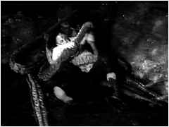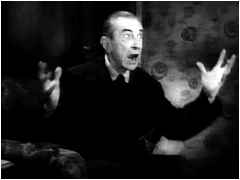 ところで、ルゴシはというと、その健康は眼に見えて悪くなっていた。ハードな撮影がそれに拍車をかけたことは云うまでもない。撮影はしばしば中断され、ルゴシは陰に隠れてモルヒネを一発、元気を取り戻して撮影再開。こんな無茶が繰り返された。 一代のドラキュラ俳優ベラ・ルゴシは1956年8月16日(『怪物の花嫁』の公開から3週間後)に心臓発作に襲われ世を去った。椅子に腰かけた状態で発見され、膝にはウッドの脚本『最後の幕』が置かれていた。 |