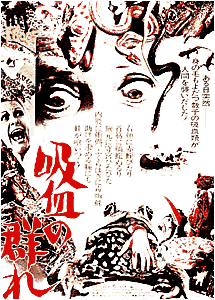この『吸血の群れ』も、そのポスターのグロテスクが故に、私たちの間で大いに話題になりました。そして、上野の二番館まで観に行って、大いにズッコケました。爬虫類たちは血を吸わないし、カエルが人を食べるシーンなどもなかったからです。ただヒルやらトカゲやらヘビやらカメやらが唐突に現れて、それを見てショック死したオバサンたちの体に這い回るだけ。