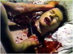前作で自殺したロジャーの墓を暴く女がいた。その切腹自殺を新聞で読み、その死にっぷりの良さに憧れて、屍体を盗みに来たのである。 続編ももちろん上映禁止、廃棄処分の命令が下った。その後、『死の王』『シュラム』と、同様に死をテーマにした作品を放ったブットゲライトだったが、いずれも上映禁止処分となる。今では当局の監視下にあり、新作を撮れない状態にあるという。そんな中で1995年、日本で公開するために極秘で編集されたのが『ネクロマンティック特別編』。正続2本を一つにまとめたもので、正直云って、このバージョンの方が無駄な描写がなくてベスト。残酷描写におおらかな我が国では円満にブットゲライトの奇想を楽しめるが、それでもチンポコにモザイクが入るのはなんとかならんか。 |