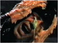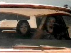 『おはよう子供ショー』を見ていた私は、或る映画のCMに早朝から驚かされた。車を運転する女性。と、後部座席に黒目勝ちの無気味な人間が出現する。ギャーッと悲鳴をあげる女性(写真上)。CMはこれだけだったが、まだウブだった私にはかなりショックだった。この映画こそ『魔鬼雨』である。『猿の惑星』のスタッフが手掛けたという特殊メイクだけが売りのホラー映画。数年後、テレビで観たが、ラストの人体溶解描写以外は見どころはなかった。 人が溶けるシーンはたしかによく出来ている。しかし、脚本が圧倒的につまらないので、見ていてつらくなる。キャストの豪華さが唯一の救いか。 註1 メイクをしているので断言できないが、おそらく左の写真で溶けているのがトラボルタである。 |