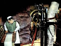 内容も悲しくなるほどバカバカしい。カーロフ扮するフランケンシュタイン男爵は、あのフランケンシュタイン博士の末裔である。アメリカのテレビ局に「フランケンシュタイン生誕230周年」の企画を持ち込んだ彼は、そのギャラで原子炉を買い込み、城にやって来た撮影隊を抹殺して、その部品で人造人間を組み立てるのであった.....。
