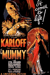 ミイラ映画の原型がこれだ。包帯でグルグル巻きのミイラが甦り、歩き出したのはこの映画が史上初である。演じるのは『フランケンシュタイン』のボリス・カーロフで、本作をもって怪奇スターとしての地位を不動のものにした。