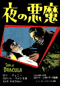 『魔人ドラキュラ』『女ドラキュラ』に続くユニバーサル製ドラキュラ映画の3本目。ロン・チェイニーJr.扮するアルカード伯爵(ドラキュラの逆綴り)はドラキュラの息子ではなく、よって原題は偽りである。私は観たことはないが、写真で見る限りロン・チェイニーJr.は明らかにミスキャストで、「ジャック・ピアースによる一級のメイクにも拘わらず吸血鬼としてまったく説得力に欠けている」と酷評されている。親父は変装名人だったのになあ。