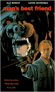 まったく期待しないで観たら、これが意外や大当たり。いやあ、面白いのなんの。.....もちろん、あくまでB級映画としての面白さなんだけどね(笑)。ツッコミどころが満載で、みんなでツッコミながら観る、パーティ向きの映画と云えましょう。 邦題から『バイオハザード』のようなミュータント大暴れの話かと思ったら、原題は「人間の最良の友」。そう。お犬様が主人公なのである。しかし、ただのワン公ではない。遺伝子組み換えの結果、豹やらフクロウやらカメレオンやらの長所を取り入れ、知能も人間並みに膨れ上がった「戦闘用」の怪物なのだ。 「猫を丸飲みするのは、やっぱり蛇の遺伝子か?」 で、いろいろあって、マックスはヘンリクセン様と討ち死に。めでたしめでたしかと思ったら、強姦されたコリー犬がマックスの落とし胤を産んで「ジ・エンド」。ひと昔前なら「ジ・エンド?」とテロップが出た筈のB級テイストに大満足の1本である。 |