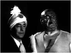 映画『エド・ウッド』は棺から起き上がるクリズウェルの前口上で始まるが、その元ネタが本作である(左写真上)。『プラン9』に次いで製作された長篇映画であるが、劇場にかけられることはなかった。現像代が払えなかったために差し押さえられてしまったからである。日の目を見たのはウッド没後のことらしい。本当にダメな人だったのだ、ウッドという人は。 本作を観ると、ウッド作品においてベラ・ルゴシの存在が如何に大きかったかがよく判る。枯れても名優だったルゴシのいないこの映画はスカスカだ。クリズウェルは相変わらずカンペを読んでいるのがミエミエだし、トー・ジョンソンはウロウロするだけ。ヴァルダ・ハンセンは、そのアンゴラのセーター故にウッドがキャスティングしただけのおねえちゃんなので問題外。俳優らしい俳優はケニー・ダンカンぐらいしかいないのだから、マトモに仕上がる筈がないのである。 なお、この映画ではウッドは、ヒッチコックを意識してか、特別出演している。警察署に貼られている指名手配写真がエド・ウッドその人なのである。気づいた時には吹き出してしまった(註1)。 註1 もう1ケ所、ウッドが出演している場面がある。映画前半、若者が取っ組み合いの喧嘩をしている映像が無意味に挿入されているのだが、その一人がウッドなのである。これは56年に製作打ち切りになった『ロックンロール・ヘル』の映像だそうだが、云われないとウッドだと判らない。 |