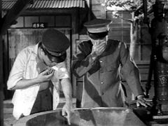 ただ、彼の職人監督としての生真面目さが、今になって見れば失笑を誘う場面が多々ある。例えば、冒頭での歩兵駐屯地の井戸からバラバラ死美人の胴体が発見されるシーン。井戸水を一等兵が口にして、