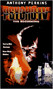 で、『サイコ3』である。 物語は前作の終わりから始まる。実の母親だと称する老婆の訪問を受けたノーマンは、彼女を殺害し、再び剥製にして昔の生活に戻って行った。そんな時、かつてシャワールームで殺したマリオン・クレインとそっくりな女がベイツ・モーテルに宿泊する。母親は命じる。あんな淫売は殺してしまえッ。女装したノーマンは再びシャワールームで彼女を襲う。ナイフをかまえてカーテンをガラッと開けると、なんと、彼女は手首を切って自殺しようとしていた.....。 『サイコ3』はどうして、こんなブザマな作品に仕上がったのか?。 やがて、彼はエイズに冒される。死期を悟った彼が、今度は真摯な態度で臨んだのが『サイコ4』である。生涯の大役ノーマン・ベイツに決着をつけるべく、物語を犯行前の少年時代に遡らせて、その精神分析を徹底的に試みている。映画としては面白味に欠けるが(だからTVMとして製作された)、『サイコ4』をもってパーキンスのノーマン・ベイツは完結した。彼の生前に完結できたことは、ファンとしては喜ばしい限りである。 |