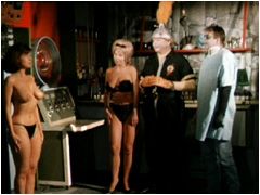 さて、ここで映画史の講釈を一つ打っておこう(もちろん、私は淀川さんではないので、あくまでも受け売り) やがて50年代に入り「ヌーディスト映画」が登場した。ヌーディストの生活をただ記録しただけの屈託のない健全映画だ。抜けねえ、抜けねえ。しかし、野郎どもは群がった。とにかく「動くハダカ」が見たかったのだ。 そして、ストリップ小屋のステージをただ撮影しただけの「バーレスク映画」が登場した。こちらの方がまだオカズになるが、扇情的な内容なので、乳首まで見せることはなかった。 こうした不毛の努力の総決算として登場したのが「ヌーディー・キューティー」である。一応、ストーリー仕立てになってはいるが、主眼は「動くハダカ」であり、従って、絵的には「バーレスク映画」と変わりない。変わりがあるとすれば、乳首を見せていることか。しかし、直接的にセックスを描く真似はしない。本作DVD解説を担当しているフランク・ヘネンロッターもこのように述べている。 やがて70年代に入り、ヘイズ・コードが撤廃されると、ハードコア花盛りになる。「ヌーディー・キューティー」の役割も終わるが、こんな映画でも、かつては需要があったのだ。 |