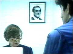 要するに、ハイテク企業が製作したエレベーターに瑕疵があり、人を殺し始めたという、もう何千万回も語られてきたような物語。そのハイテク企業の名は「ライジング・サン」で、また日系企業かよと思っていたら、その受付で飾られる社長と思しき肖像写真が中曽根康弘(左写真)。これには思わず吹き出してしまった。 それでですね、本作はですね、もう2001年だってえのにハリウッドでリメイクされてるんですよ。同じ監督で。タイトルは『ダウン』だってさ。 |