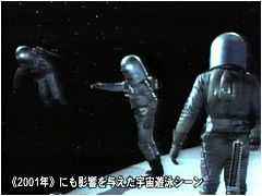 られた流線形の未来風景が実に心地よく、気分はすっかり大阪万国博覧会である。本作を見たスタンリー・キューブリックが『2001年宇宙の旅』を撮る際に、ドーソンをアドバイザーとして呼び寄せたと伝えられているが、なるほど、それに価するだけのいい仕事をしている。 (ちなみに、上のジャケット絵はデタラメ。宇宙銃撃戦もなければ、宇宙船爆破もない。光線銃を持ったビキニのおねえちゃんも登場しない。騙されてはいけない) |